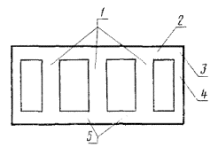 1 - стержень; 2 - торцевая часть бокового ярма; 3 - боковое ярмо; 4 - боковая часть бокового ярма; 5 - торцевое ярмо