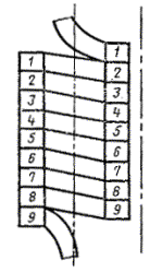 Магнитная система, в которой стержни и ярма с плоской шихтовкой собираются в переплет как цельная конструкция (см. черт. 2) |