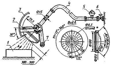 (Это расстояние может быть уменьшено, для обеспечения смачивания оболочки вертикальной струей воды) |
