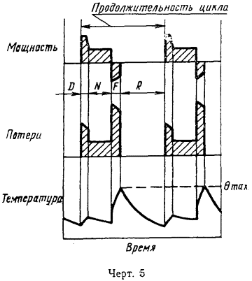 26. Практически повторяющаяся температура какой-либо части электрической машины при повторно-кратковременных или перемежающихся режимах работы - температура какой-либо части электрической машины в конце рабочего периода или в конце паузы, изменение которой от одного рабочего периода к другому не превышает 2°С в течение 1 ч при условии, что нагрузка машины во время рабочих циклов, а также продолжительность включения или продолжительность нагрузки и температура охлаждающей среды остаются практически неизменными.