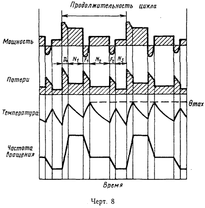 В этом режиме работы потери при переходе с одной частоты вращения на другую оказывают существенное влияние на превышения температуры отдельных частей машины.