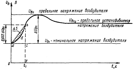 За момент начала форсировки возбуждения (точка а) принимается момент скачкообразного изменения напряжения в сети или на входе автоматического регулятора возбуждения.