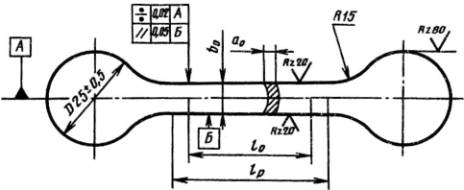 Диаметр или ширина рабочей части образца |