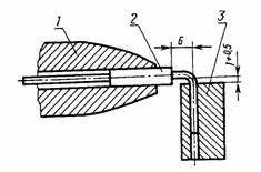 2. Пламя горелки прикладывают к поверхности изделия первоначально в течение одной или нескольких секунд и регистрируют время самостоятельного горения изделия. Если при этом время самостоятельного горения более 1 с, то время приложения пламени уменьшают до такого значения, при котором продолжительностьсамостоятельного горения равна 1 с.
