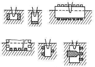 Черт. 44 помогает при оценке смачивания; масштаб таков, что размеры сравнимы с полем зрения микроскопа и при этом мелкие детали изображены достаточно четко.
