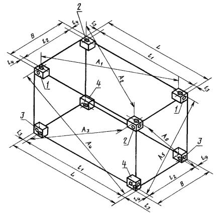 1 - фитинг верхний правый (ВП); 2 - фитинг верхний левый (ВЛ); 3 - фитинг нижний правый (НП); 4 - фитинг нижний левый (НЛ)