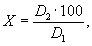 4.1. Интенсивность окраски испытуемого бензина (концентрацию красителя) по отношению к контрольному бензину (X) в процентах вычисляют по формуле