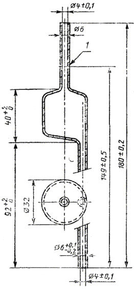 6.7.1. Пипетка (черт. 6) из прозрачного стекла с калибровочной меткой на высоте (149±0,5) мм от основания пипетки, соответствующей объему (20,0 ± 0,2) см3. Пипетка соединяется с фильтром.
