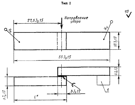 4.1.1. Испытание на ударный изгиб следует проводить на образцах типов I-III (см. черт. 1-3) при температуре 20±5 °С или при температурах от минус 100 до плюс 1000 °С в соответствии с требованиями технической документации на изделие.