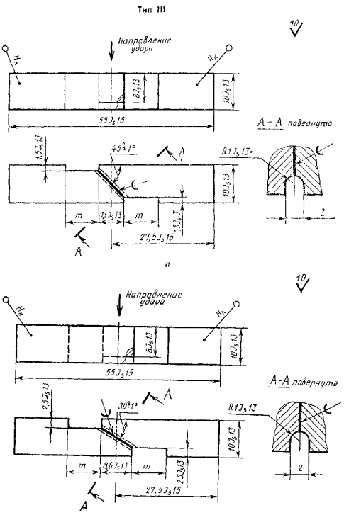 4.1.4. Испытание образцов типа I рекомендуется проводить с прокладками, обеспечивающими перпендикулярность паяного шва плоскости движения маятника.