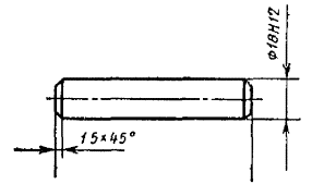 4.2.3. Образец следует ввести в полость ударного груза до совмещения отверстий диаметром 18 мм в образце и стенках ударного груза и закрепить его фиксатором. Боек необходимо ввести в наружное отверстие образца и установить на выступы ударного груза. Форма и размеры фиксатора и бойка должны соответствовать указанным на черт. 6. Длина фиксатора - 40 мм, длина бойка - 90 мм.