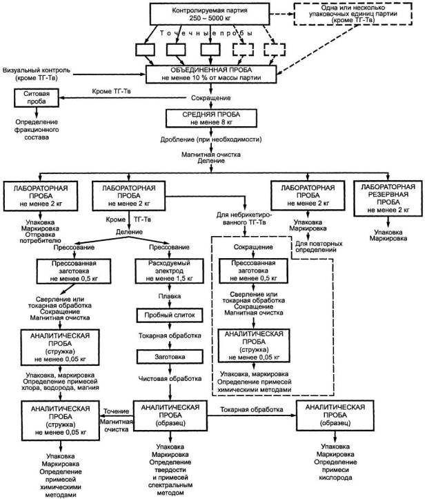 Схема отбора и подготовки проб от партий губчатого титана в виде кусков приведена в приложении А.