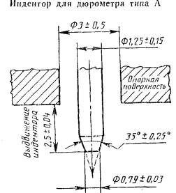 4.2. Индентор в виде закаленного стального стержня диаметром 1,10 - 1,40 мм, форма и размеры которого для дюрометров типа А показаны на черт. 1, а для дюрометров типа D - на черт. 2.