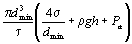 Обозначения, принятые в формулах: Vи - объем изделия; t - продолжительность испытания; Vк - объем камеры; dmin - наименьший регистрируемый диаметр пузырька; σ - коэффициент поверхностного натяжения; ρ - плотность индикаторной жидкости; g - ускорение свободного падения; h - высота слоя индикаторной жидкости; Ра - атмосферное давление; Рв - давление в вакуумированном пространстве над слоем индикаторной жидкости; ∆Pmin - нижний предел измерения манометра; τ - время от момента образования пузырька до его отрыва. |