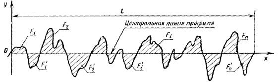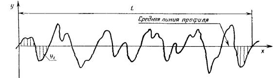 Базовая длина, имеющая форму номинального профиля, расположенная эквидистантно общему направлению профиля и делящая профиль так, что в пределах базовой длины суммы площадей, заключенных между этой линией и профилем, по обе ее стороны одинаковы (черт. 15)