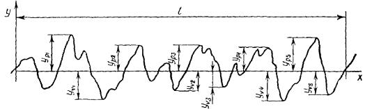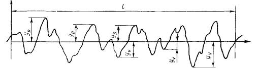 Профиль, получаемый при сечении поверхности плоскостью, перпендикулярной направлению неровностей (черт. 10)