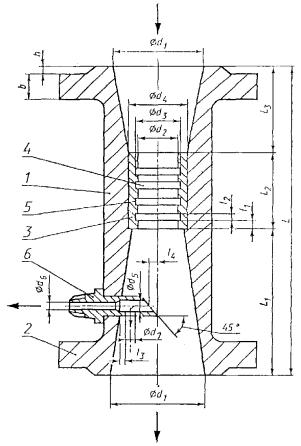 2. При диаметре обводной линии менее 40 мм для монтажа диспергатора на обводной линии устанавливают переходы на диаметр равный d1.