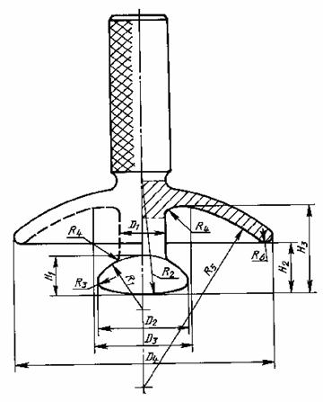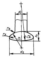 Основные размеры, задающие форму пестика, - h1, d2, r1, r2. Размер r3 дан для справки, поскольку его точное значение может быть получено только геометрическим построением. Кроме того, значение диаметра пестика d1 не должно превышать значений, указанных на длине, равной H3 соответствующего изношенного подвесного проходного калибра (см. пункт 11).
