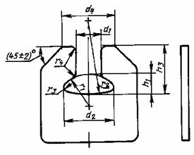 1) Размеры нового калибра должны быть заключены между максимальным и минимальным их значениями. 2) См. примечание 2 к пункту 5. 3) См. приложение В.1. 4) При контроле гнезда, в котором есть стандартные шплинты, допускается использовать калибр, предназначенный для контроля гнезда под W-образный замок, при условии применения дополнительного плоского калибра; при этом общая высота должна соответствовать размеру Н2 для шплинтов. |