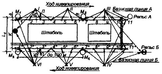3.1.7. Для обеспечения контроля планово-высотного положения элементов рельсового пути в процессе устройства и эксплуатации рельсовый путь должен быть оборудован геодезической основой (репер, створные линии и т.д.) - рис. П.8.1, П.8.2 приложения 8.