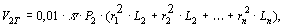 где Р2 - максимальное давление в трубопроводе по технологическому регламенту, кПа; r - внутренний радиус трубопроводов, м; L - длина трубопроводов от аварийного аппарата до задвижек, м.