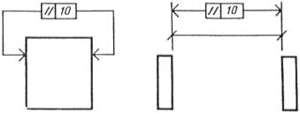 2.7. Характеристики точности ориентации двух граней или поверхностей элементов в случаях, когда ни одна из них не является базой, указывают в рамке с соединительной линией, заканчивающейся стрелками (черт. 3). Если нет специальных указаний, требование распространяется на всю длину элементов.