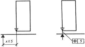 Буквенное обозначение вписывают в дополнительную рамку, помещаемую слева от рамки, в которой указывают допуски или предельные отклонения.