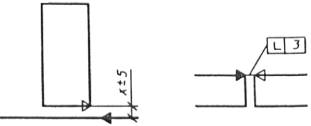 2) незачерненным треугольником на устанавливаемом элементе. Этот ориентир помещают симметрично на линии (оси) или грани устанавливаемого элемента.