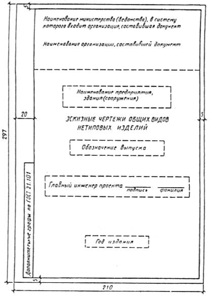 - в графе "Примечание" содержания выпуска эскизных чертежей при их комплектации в виде отдельного выпуска "Эскизные чертежи общих видов нетиповых изделий".