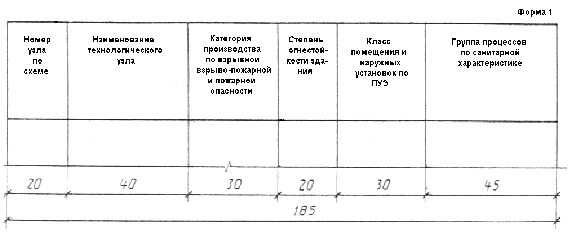 К схеме приводят ведомость технологических узлов по форме 1, графы которой заполняют в соответствии с их наименованием.