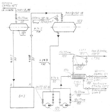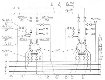 оборудование. При трех или более одинаковых машинах или аппаратах с аналогичной обвязкой трубопроводами на схеме указывают только одну машину или аппарат с линиями и обозначением их количества и последовательности соединения;