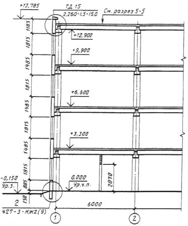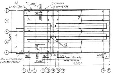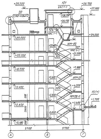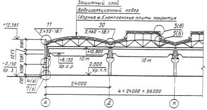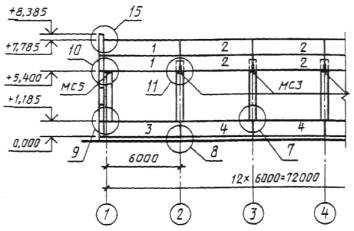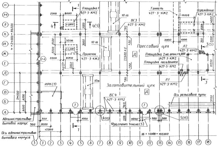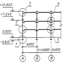 3) линии разрезов. Линии разрезов проводят, как правило, с таким расчетом, чтобы в разрез попадали проемы окон, наружных ворот и дверей;