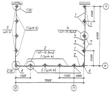 * Схемы расположения металлических элементов сборных, перегородок и заполнения оконных проемов выполняют в составе рабочих чертежей металлических конструкций. Схемы расположения элементов сборных железобетонных перегородок выполняют, как правило, в составе основного комплекта рабочих чертежей железобетонных конструкций.