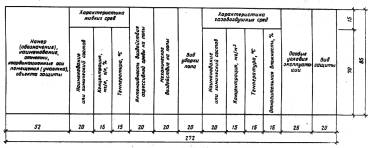 в графах «Характеристика газовоздушных сред» - наименование или химический состав по компонентам агрессивных газов, их концентрацию (мг/м3) или группу агрессивности газов, температуру (°С), относительную влажность (%);