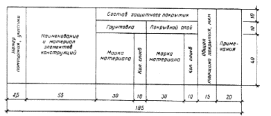На листе, где помещены планы полов, приводят данные по антикоррозионной защите несущих и ограждающих конструкций зданий и сооружений в таблице по форме 3.