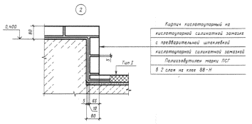 Облицовка кислотоупорной керамической плиткой марки КШ толщиной 20 мм на андезитовой замазке |