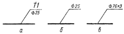 Для трубопроводов из стальных водогазопроводных труб указывают диаметр условного прохода (черт. 1б).