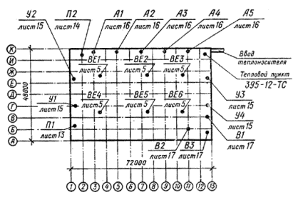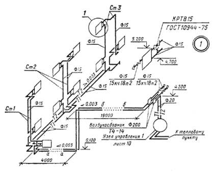 узлы схем систем отопления и теплоснабжения установок (черт. 13).