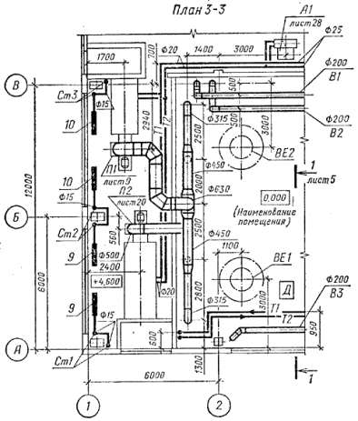 Примеры оформления схем систем вентиляции показаны на черт. 16 и 17.