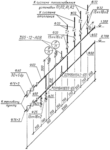 3.2.5. Для жилых зданий допускается выполнять схемы систем отопления только на подземную часть здания. Для надземной части здания выполняют схемы стояков и, при необходимости, схему разводки по чердаку.