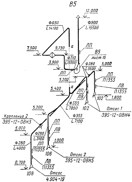 размеры горизонтальных участков трубопроводов (при наличии разрывов);