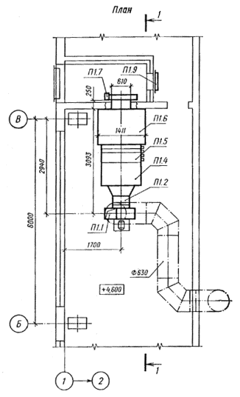 4.5. На планах и разрезах, кроме элементов установок, указывают строительные конструкции и отборные устройства для установки контрольно-измерительных приборов.