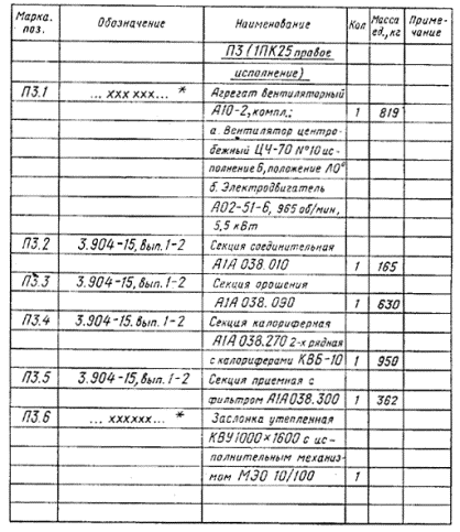 Спецификация отопительно-вентиляционных установок