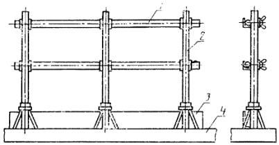 1 - заполнение; 2 - стойка; 3 - бортовая доска; 4 - плита перекрытия
