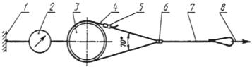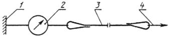 - жесткая опора; 2 - измеритель усилия, 3 -