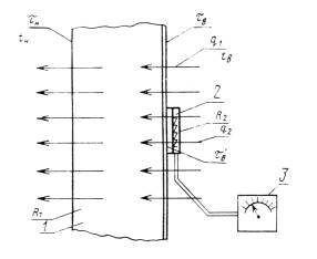 Схема измерения плотности теплового потока приведена на чертеже.