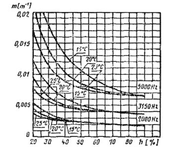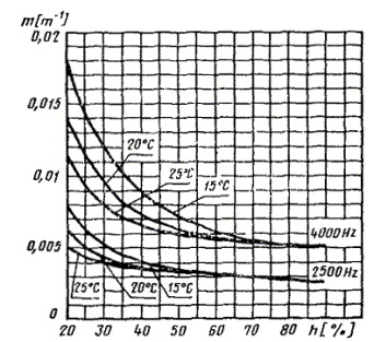 m - постоянные затухания энергии, определяемые по графикам на черт. 1 и 2 в зависимости от частоты, влажности и температуры;
