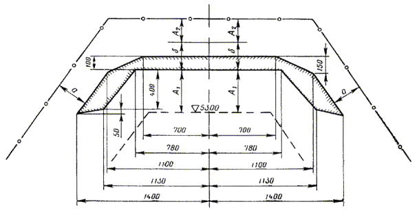 2. Для сооружений, построенных до введения настоящего стандарта и находящихся на магистральных линиях Союза ССР, используемых для международных сообщений, допускаются следующие отступления от основного контура, приведенного на чертеже: