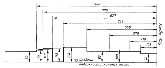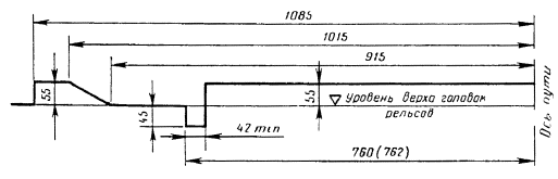 a1 = 672 мм, а2 = 762 мм - при ширине колеи 1524 мм.