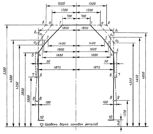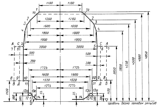 уменьшение высоты габарита до 4800 мм (до линии 1а-1а);